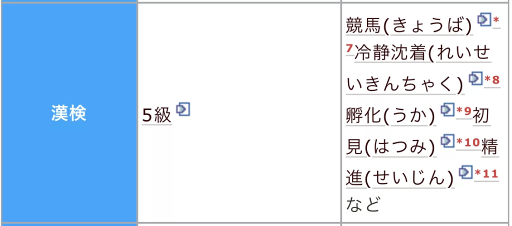 | 漢検5級 | 取得済 | 取得済 |