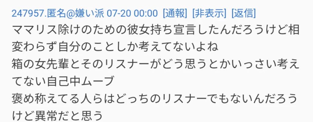 - 母親的立場を取るファンへの嫌悪感