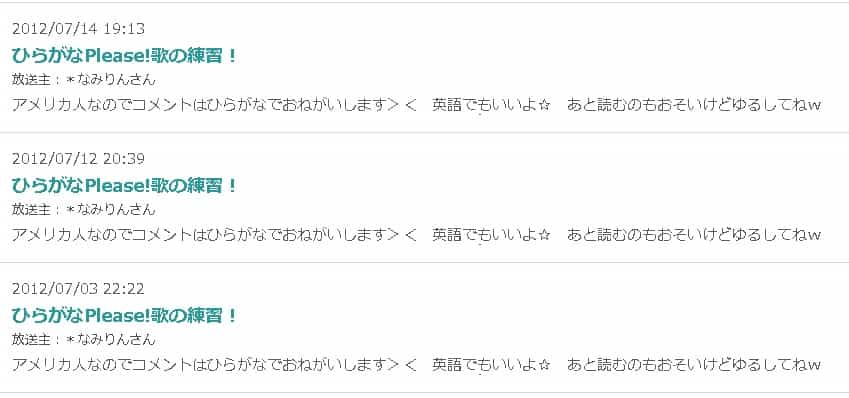 2012年7月頃からはニコニコ生放送で歌配信を大量に行っていたことを確認することができます。