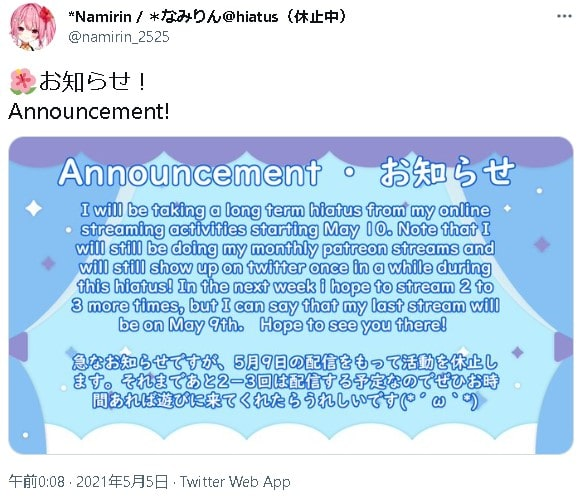 *なみりんは歌メインで活動していたのでVSingerのIRySとしてデビューしたことも納得。