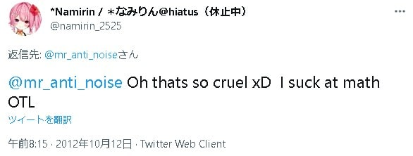 2012年10月12日に「I suck at math」とツイートしており数学が苦手だと言っていることが確認できます。