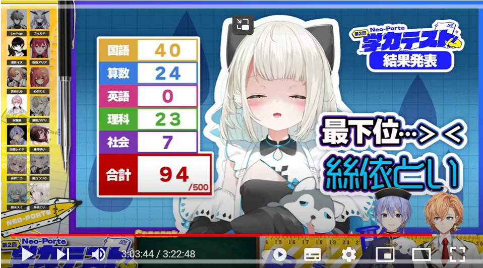 結果、絲依といちゃんは最下位だったのですが、500点満点の内、94点。さらに英語はなんと0点。
