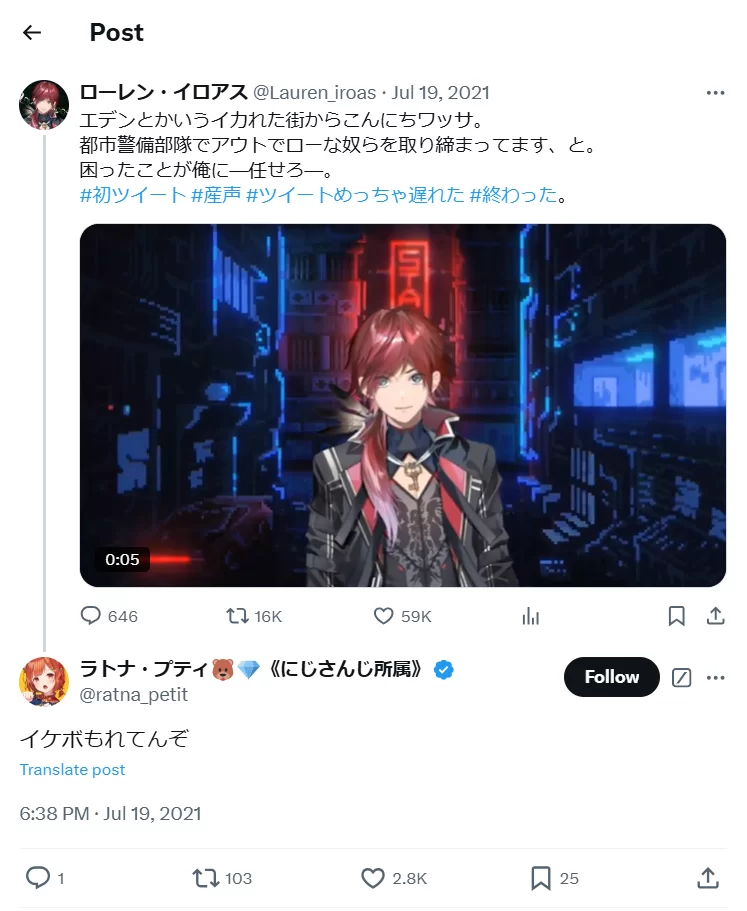 おばくんは2019年あたりまで積極的に配信活動をしていましたが、「就職」を理由に配信を辞め、そのタイミングと前後してローレン・イロアスがデビュー。