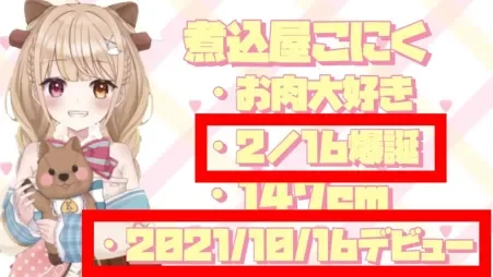 | 煮込屋こにく | 誕生日:2月16日/デビュー日:10月16日 |