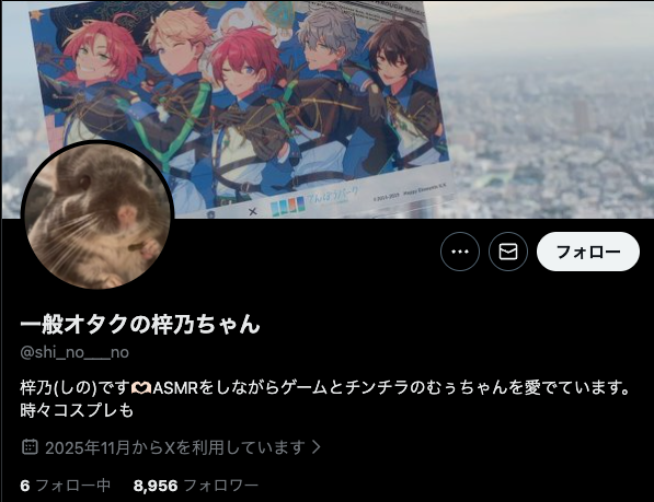 まず一般オタクの梓乃ちゃんの初ポストは2025年11月5日