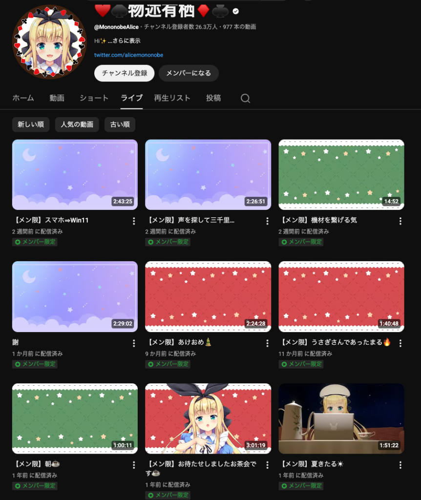 2025年6月に復帰後の活動頻度もかなり低く、配信時間も短め。