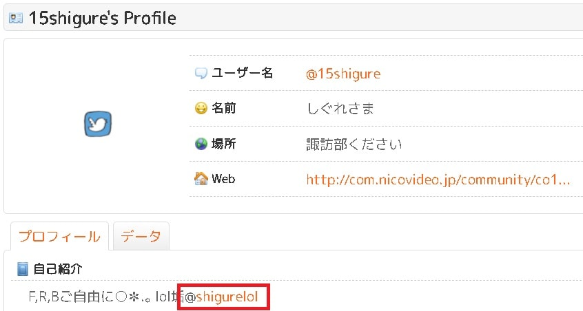 「しぐれ(@15shigure)=@shigurelol」であるため、