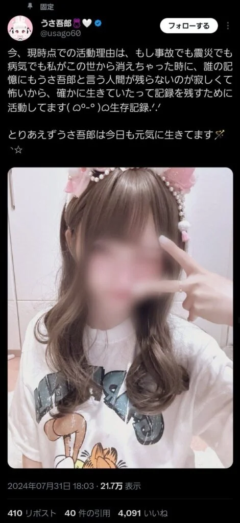 そんな中、2024年に突如うさ五郎さんが自身のビジュアルがわかるような投稿を開始。