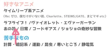 好きなもの一覧がこちら